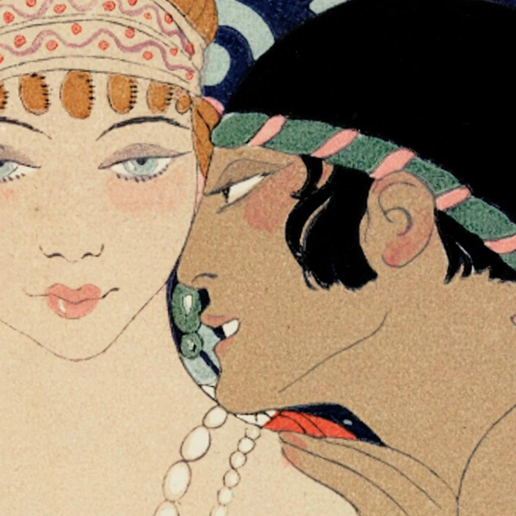 "Les Trois Beautes de Mnasidika" vintage poster by the famous French Art Deco and fashion illustrator George Barbier.